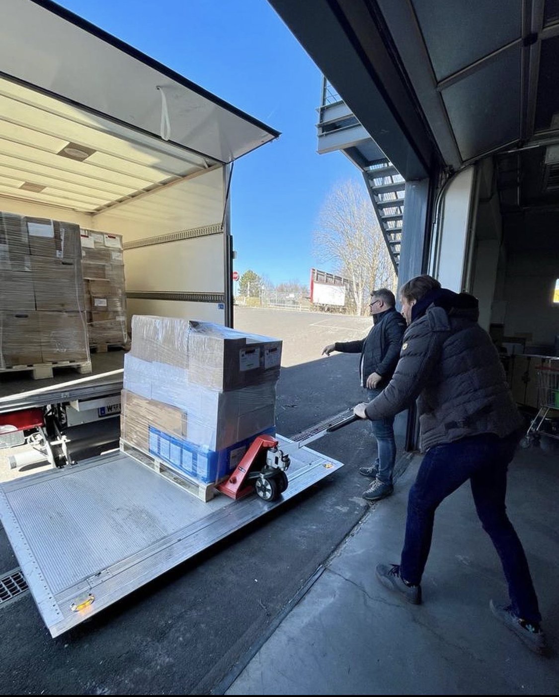 Dank der Lions Zone Linz konnte Elke Kladensky vom LC Linz Primavera unseren ukrainischen Freunden Oleksandra und Viktor für den 2. Transport wieder 8 Paletten übergeben: 3 Paletten mit Lebensmittel (Fertignahrung in Dosen, Riegel, Trockenfruechte, Nüsse, Pumpernickel, Aufstriche) und 5 Paletten mit dringend benötigten Medikamenten (Antibiotika, Insulin, Schmerzmittel und Psychopharmaka…) sowie Verbandsmaterial, Handschuhe. Die Waren wurden in Wien in einen größeren LKW umgeladen und dann ging es gleich weiter Richtung Ukraine.
