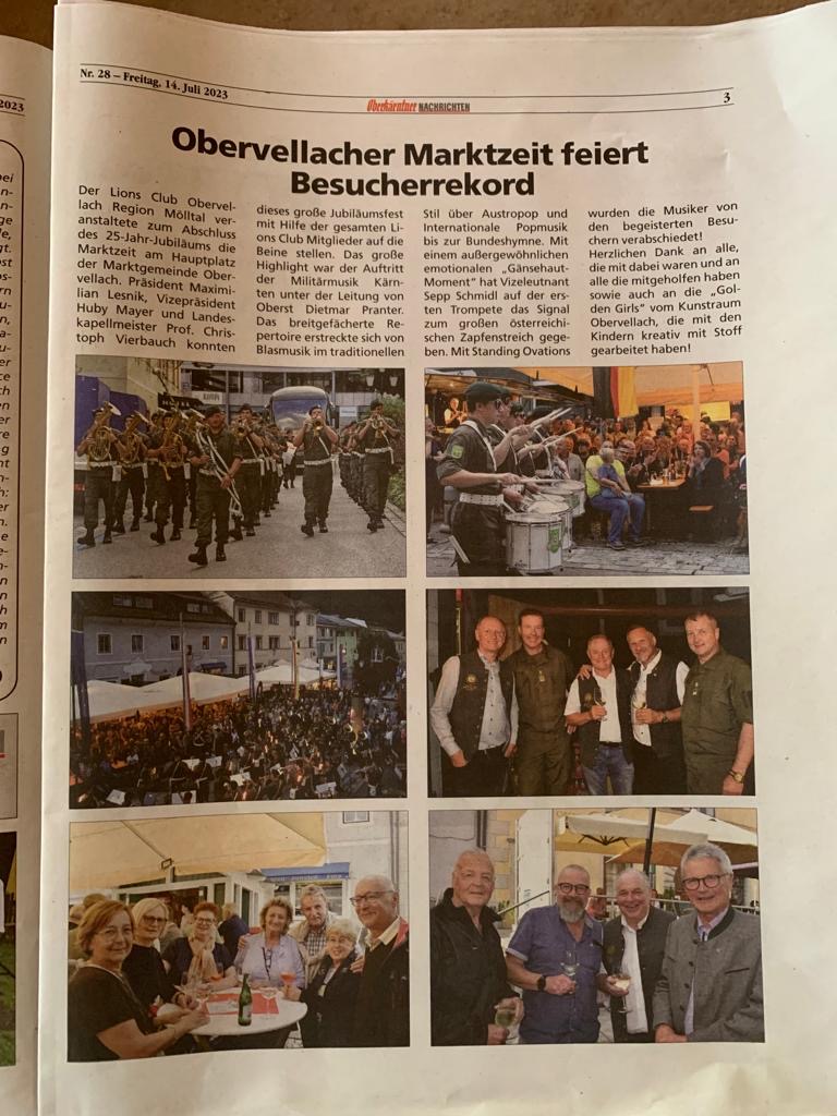 Musikalisch ging es auch am 6. Juli 2023 bei der MarktZeit in Obervellach weiter. Lionsmitglied Christoph Vierbauch konnte für den Auftakt der MarktZeit die Militärmusik Kärnten unter der Leitung von Oberst Dietmar Prantner gewinnen. Ein toller Abschluss unserer Jubiläums-Feierlichkeiten!