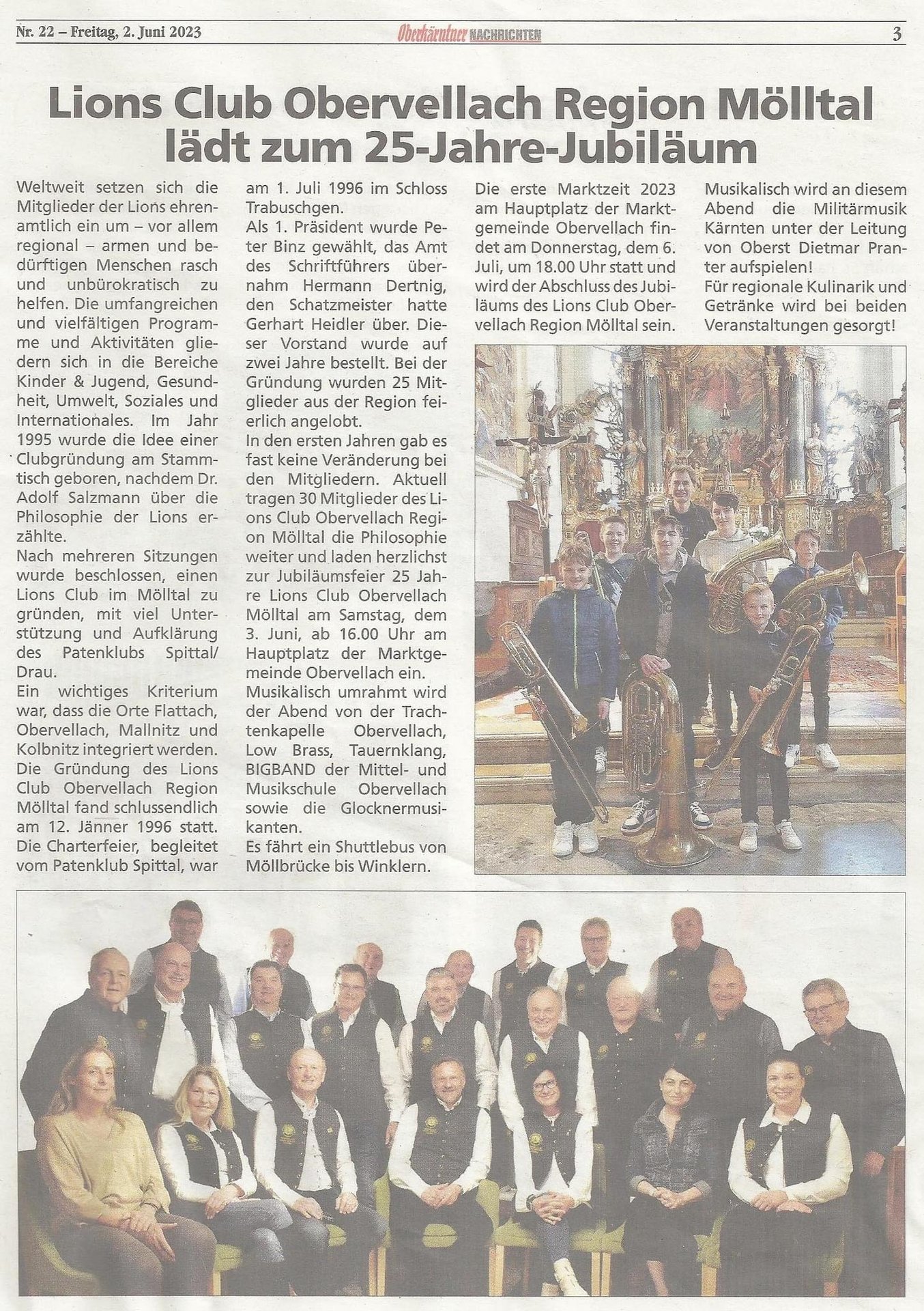Der Lions Club Obervellach Region Mölltal feierte 2023 sein 25jähriges Bestehen am Hauptplatz Obervellach – mit großem musikalischen Aufgebot.