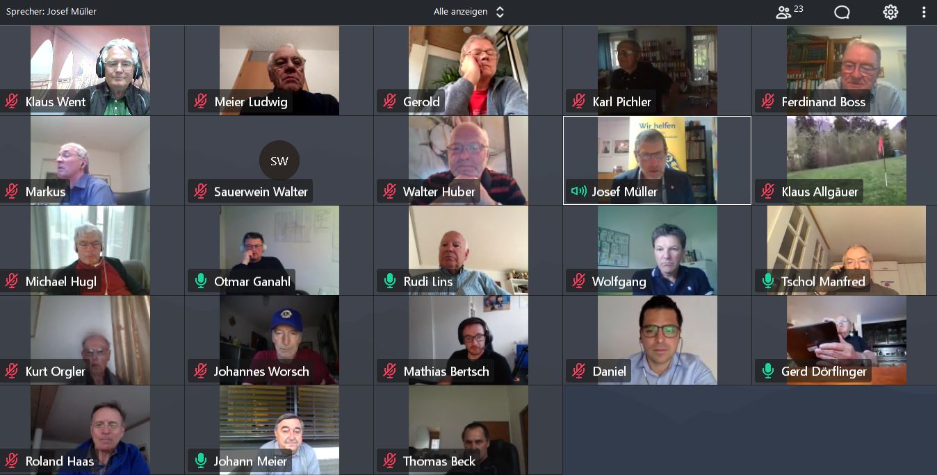 Bild 2: 23 von 34 Clubmitgliedern waren beim ersten virtuellen Clubabend anwesend und beteiligten sich am Gespräch