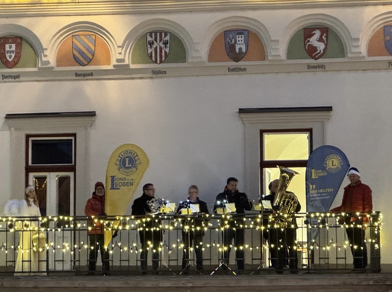 Das traditionelle Turmblasen vom Rathausbalkon am letzten Samstag vor Weihnachten wurde, wie schon seit vielen Jahren, vom LC Leoben als kulturelle Activity gesponsert.