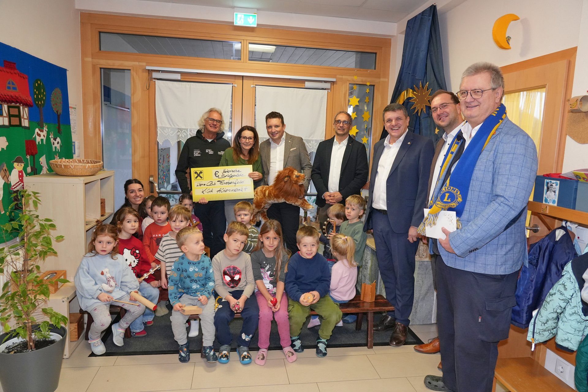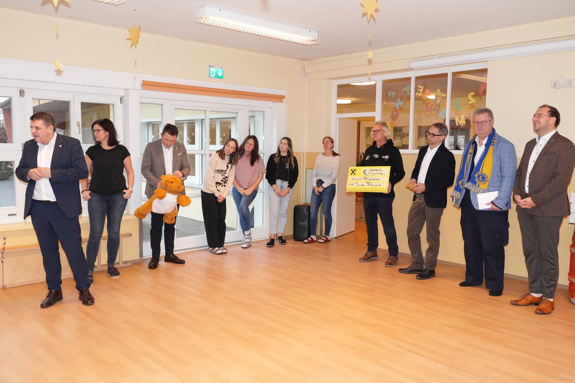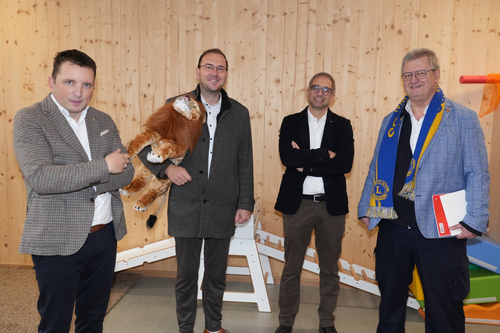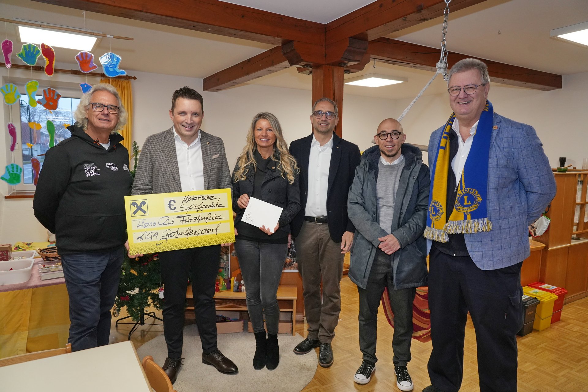 So wurde seitens der Fürstenfelder Löwen der Ankauf von Motorik- und Lernspielzeug im Gesamtwert von 4.000,- € ermöglicht. Präsident VDir. Martin Jost und Bgm. Franz Jost überreichten im Beisein einiger Lions Mitglieder den Beitrag für den Ankauf der pädagogischen Spiele bzw. köstliche Lebkuchen-Sterne für alle Kinder und dankten den Pädagog:innen für ihren wertvollen und engagierten Einsatz für die Entwicklung der Kleinsten unserer Region.