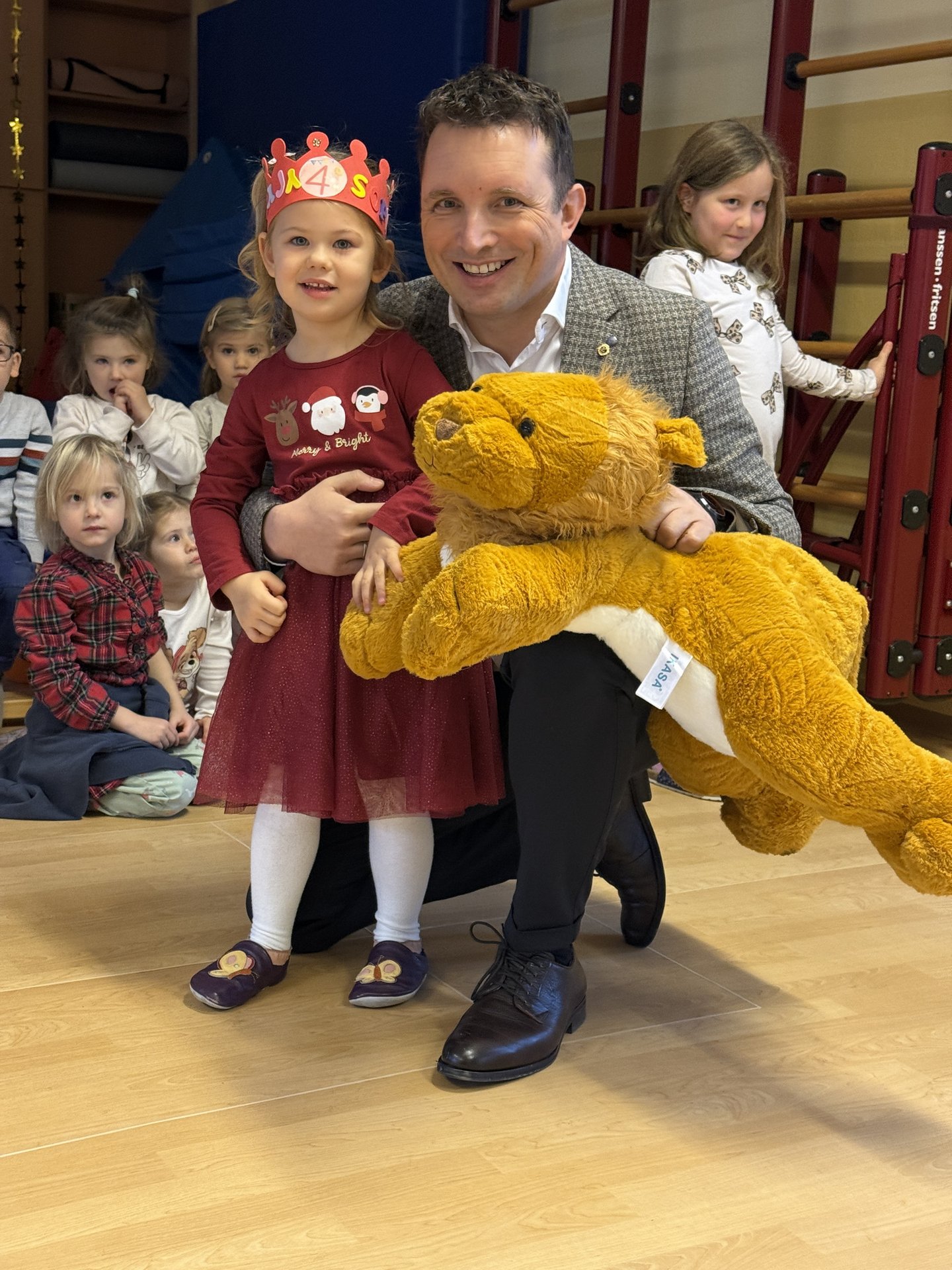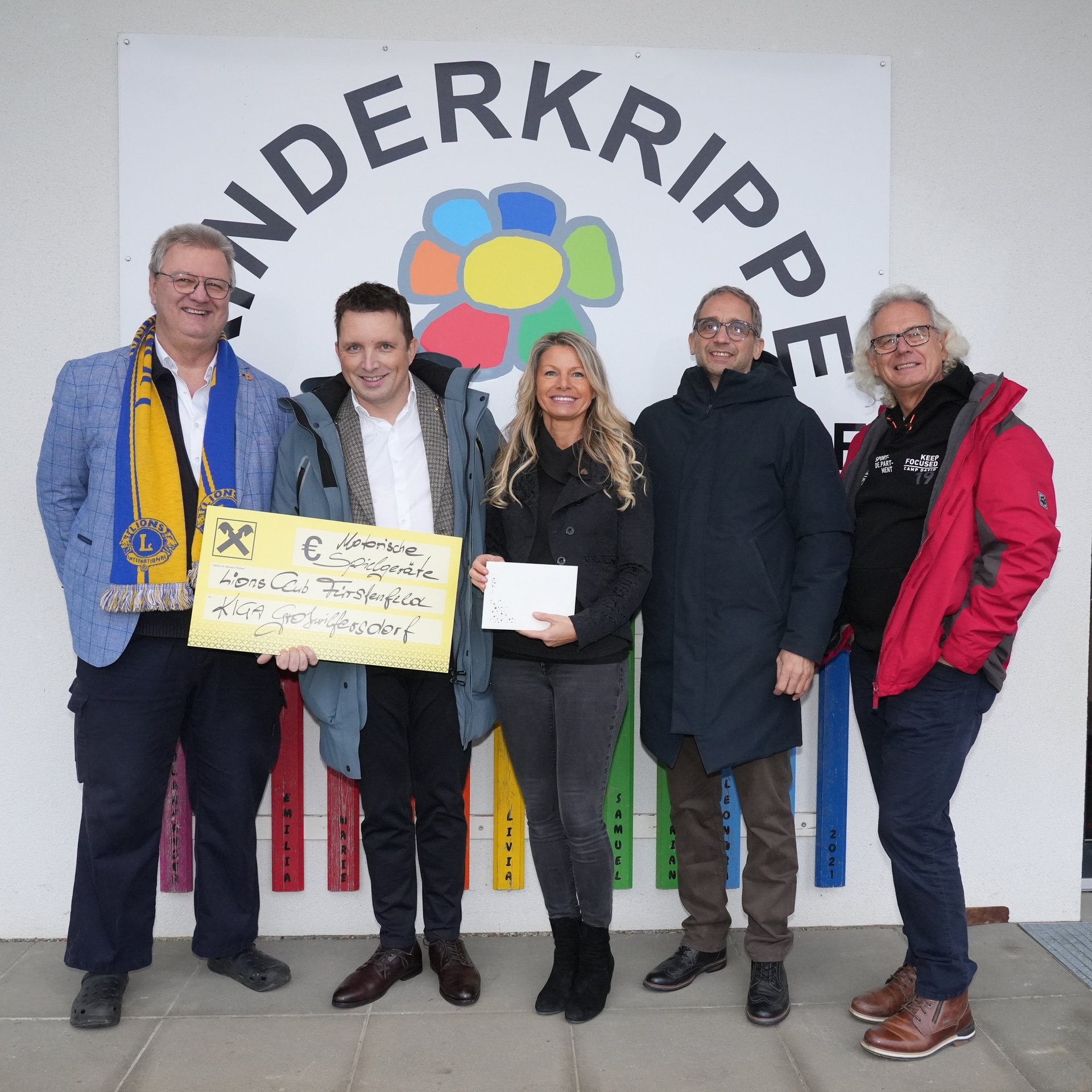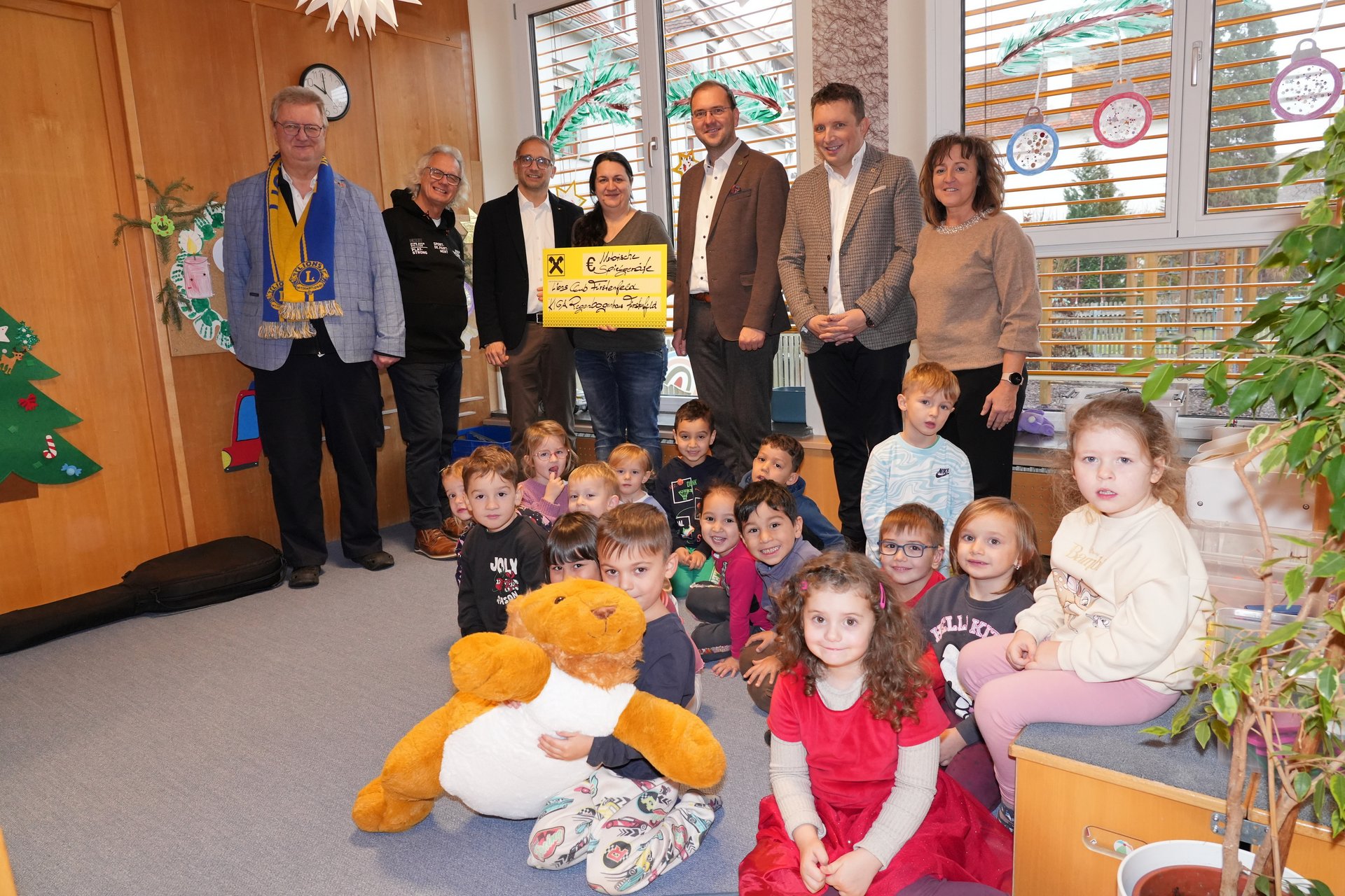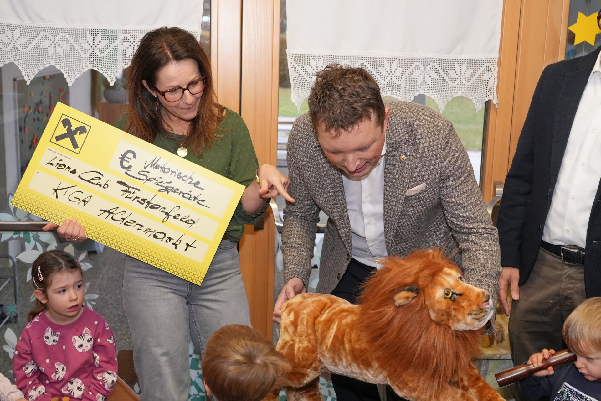 So wurde seitens der Fürstenfelder Löwen der Ankauf von Motorik- und Lernspielzeug im Gesamtwert von 4.000,- € ermöglicht. Präsident VDir. Martin Jost und Bgm. Franz Jost überreichten im Beisein einiger Lions Mitglieder den Beitrag für den Ankauf der pädagogischen Spiele bzw. köstliche Lebkuchen-Sterne für alle Kinder und dankten den Pädagog:innen für ihren wertvollen und engagierten Einsatz für die Entwicklung der Kleinsten unserer Region.
