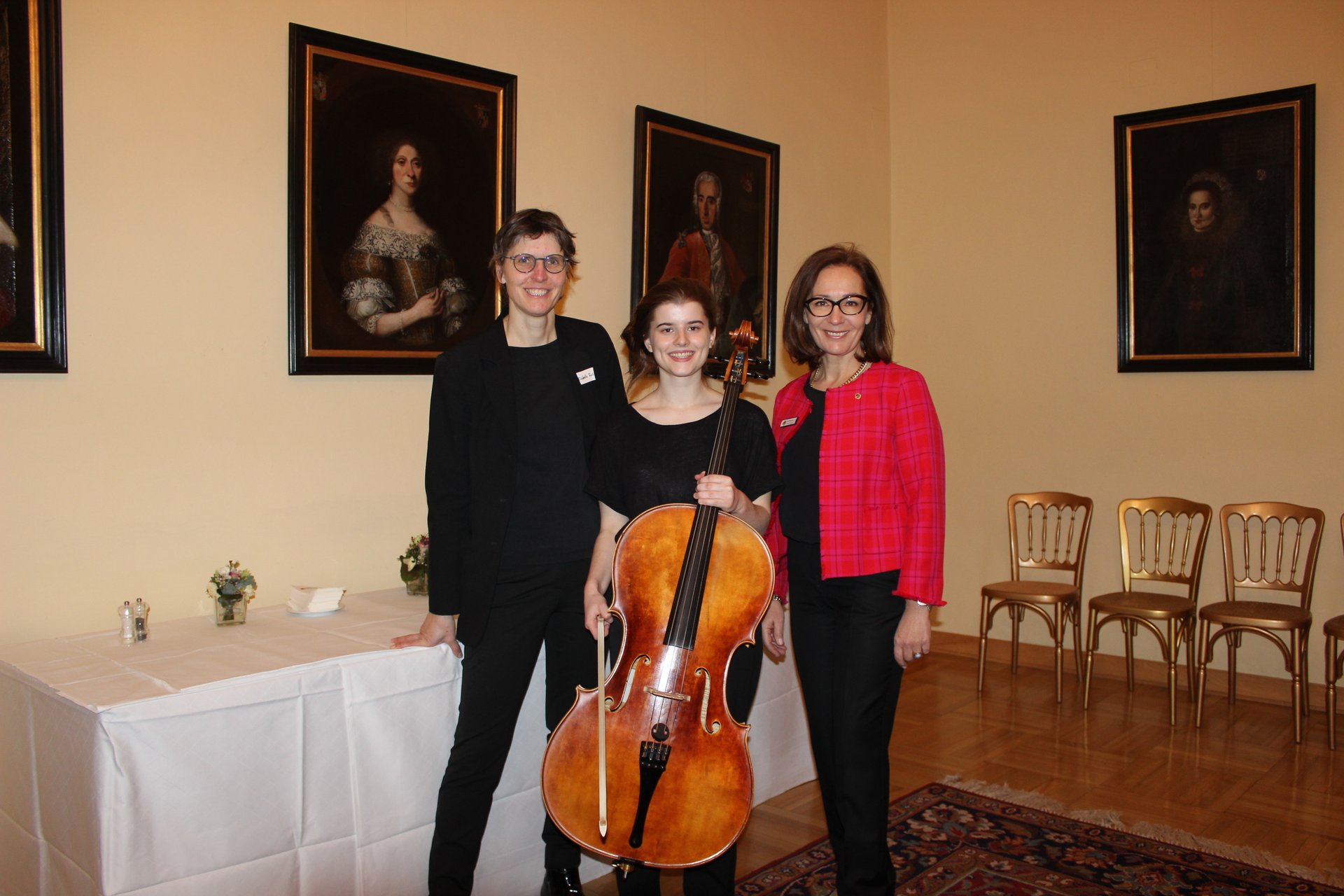 Bild 2: Elisabeth Fuchs (Chefdirigentin Philharmonie Salzburg), Sarah Moser (Akademistin Philharmonie Salzburg), Elke Berghammer (LC Salzburg Amadea)